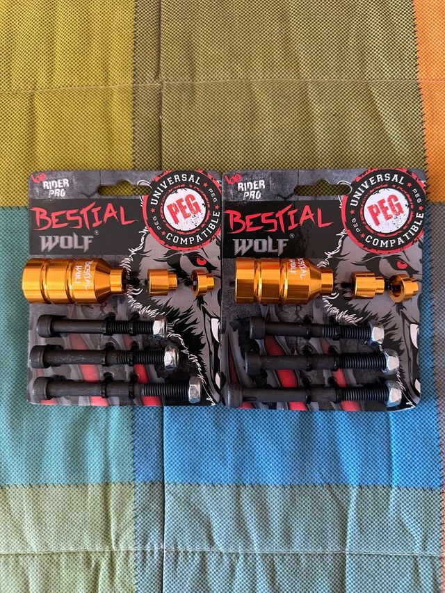 Dettagli del prodottoSet di 2 staffe per monopattino della marca Bestial Wolf in colore oro. - Materiale del supporto: alluminio. - Misure del supporto: 39mm. - Include 2 adattatori e 3 viti (70mm, 80mm e 90mm). Compatibile con la maggior parte dei monopattini freestyle. La descrizione è stata tradotta automaticamente.