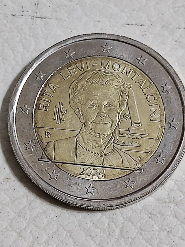 Moneta commemorativa da 2 Euro del 2024. - Raffigurante Rita Levi Montalcini. - Anno di emissione: 2024. - FDC (Fior di Conio).