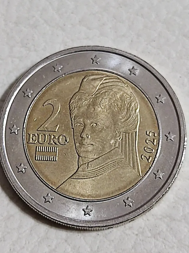 Dettagli del prodottoMoneta commemorativa da 2 Euro dell'Austria, anno 2025, dedicata a Bertha Von Suttner. Condizioni FDC (Fior di Conio).