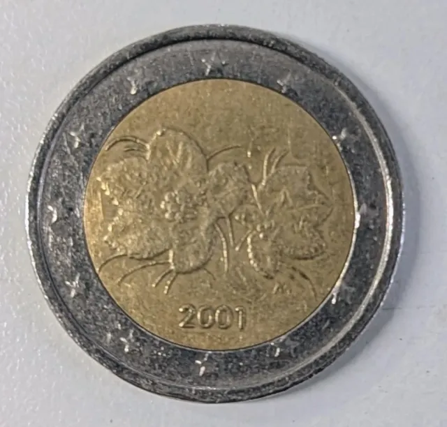 Moneta da 2 Euro della Finlandia, coniata nel 2001. - Design raffigurante fiori. - Bimetallica: anello esterno in cupronickel e centro in ottone.