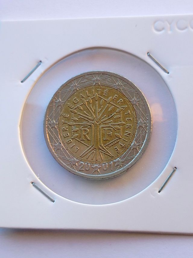 Dettagli del prodottoMoneta da 2 Euro della Francia, coniata nel 2001. Presenta un errore di conio.