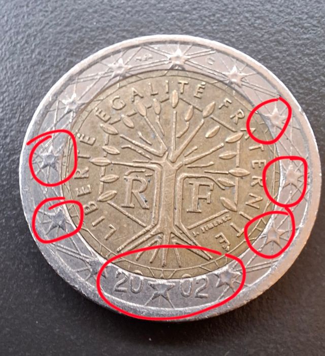 Moneta da 2 euro FRANCIA 2002 CON ERRORE DI CONIO. Presenti nel mio profilo altre monete, possibilità di acquisto in lotti
