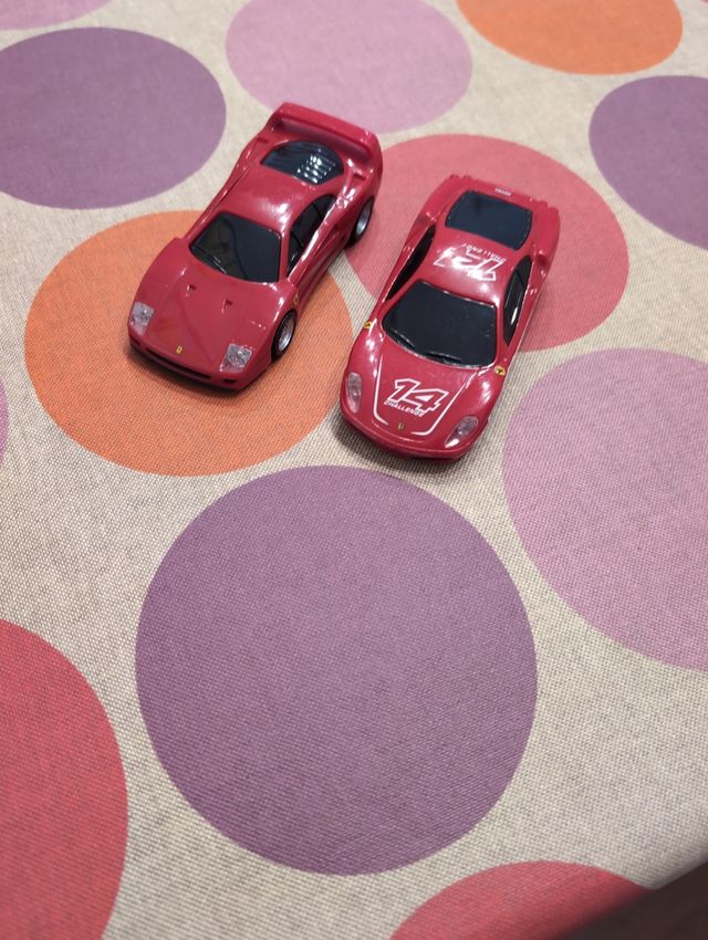 Dettagli del prodottoBellissime macchinine giocattolo del marchio Ferrari. Sono due auto in miniatura, una Ferrari F40 e una Ferrari F430, entrambe rosse e in buone condizioni.