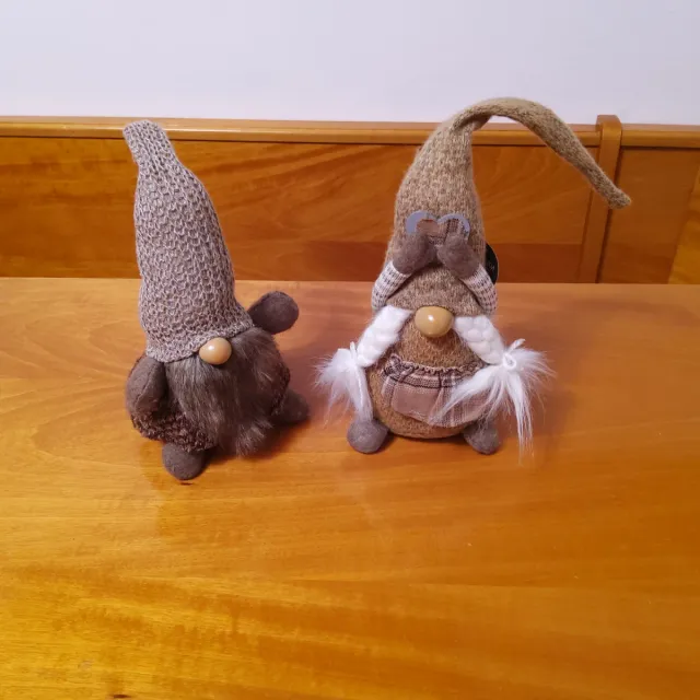 Dettagli del prodottoSet di due gnomi decorativi, perfetti per aggiungere un tocco di fortuna alla tua casa.