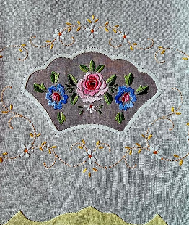 2 Grandi Teli Puro Lino Ricamo a Mano