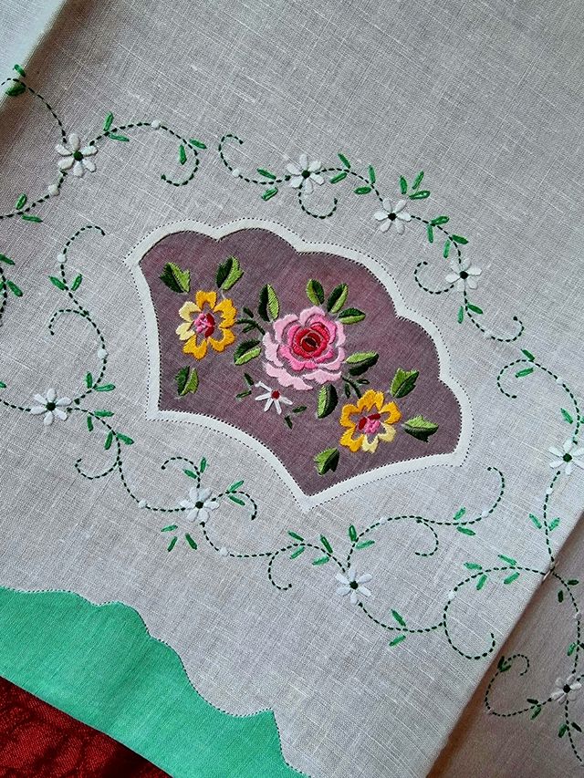 2 Grandi Teli Puro Lino Ricamo a Mano