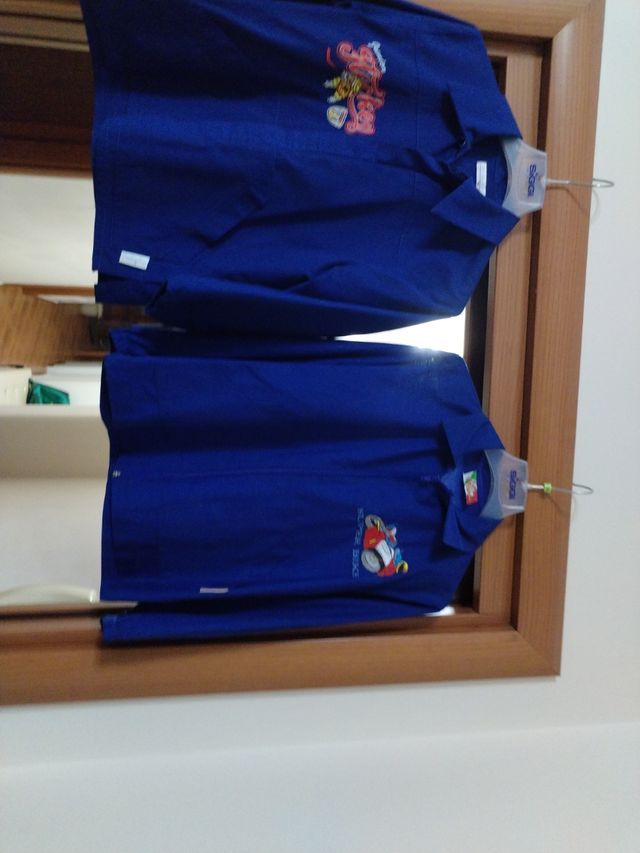 Due grembiuli per bambini, taglia 7 anni, marca Mariano e Ambrosini. - Colore blu. - Con stampe colorate sul petto.