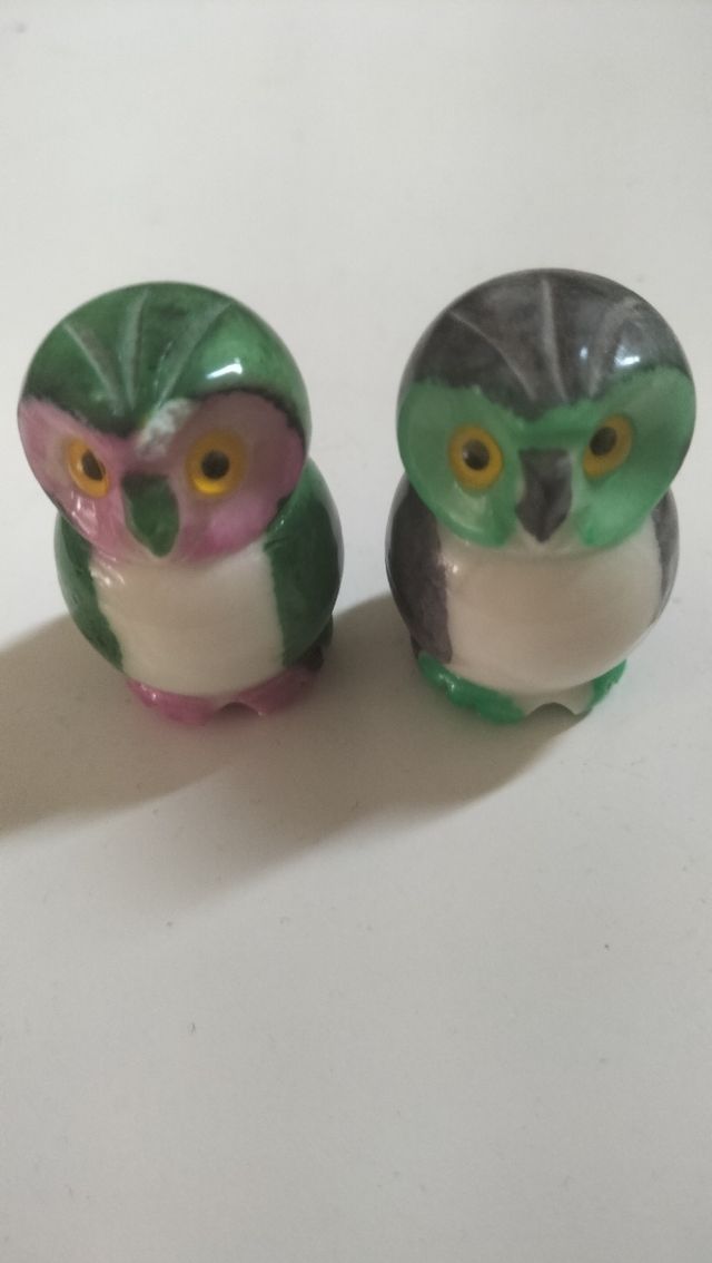 Dettagli del prodottoBellissimi gufi, realizzati in pietra, perfetti come soprammobili. Sono due pezzi, uno verde e uno grigio. Ideali per arredare con stile la tua casa! - Realizzati in pietra - Colori: verde e grigio - Dimensioni: piccole - Perfetti come decorazioni, con una piccola scheggiatura su uno dei due.