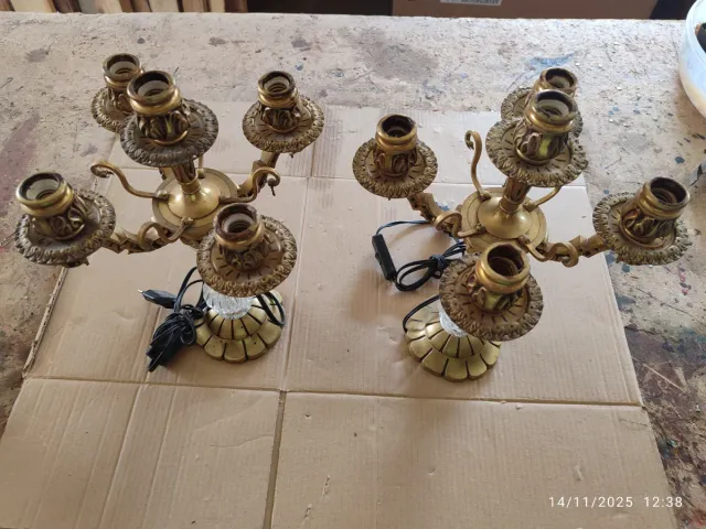 2 Antiche lampade da tavolo in bronzo e cristallo