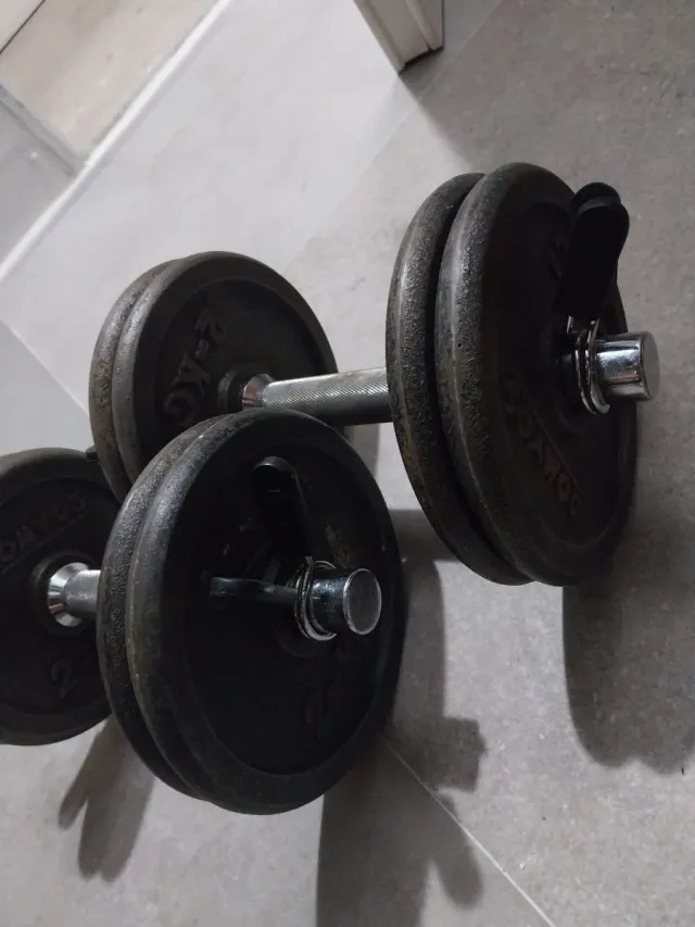 Coppia di manubri da 10 kg ciascuno. - Peso totale: 20 kg. - Dischi in ghisa - Chiusura di sicurezza inclusa.