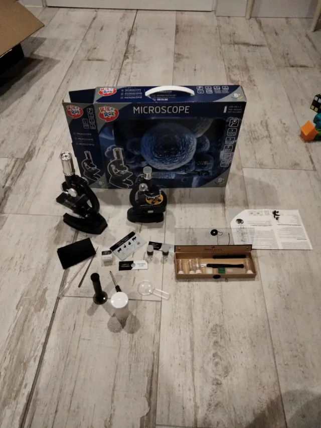 Dettagli del prodottoIn vendita due microscopi, ideali per iniziare nel mondo della scienza. Il lotto include tutto ciò che si vede nelle foto. - Due microscopi. - Accessori per esperimenti. La descrizione è stata tradotta automaticamente.