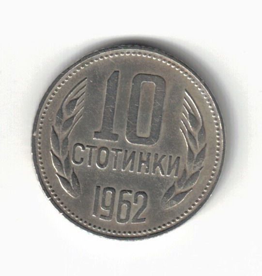 - Moneta da 10 stotinki con numero 10 e spighe di grano.