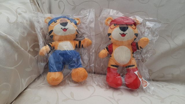nuovi, coppia di peluche tigrotti della collezione Plasmon, come in foto. Uno in rosso ed uno in blu. h.12 cm circa