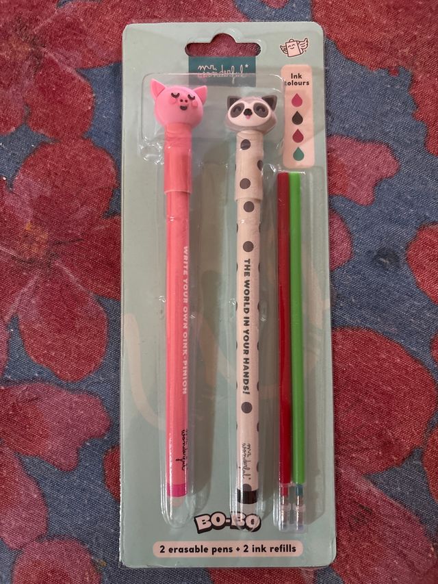 Dettagli del prodottoSet di 2 penne cancellabili Mr Wonderful, nuove.