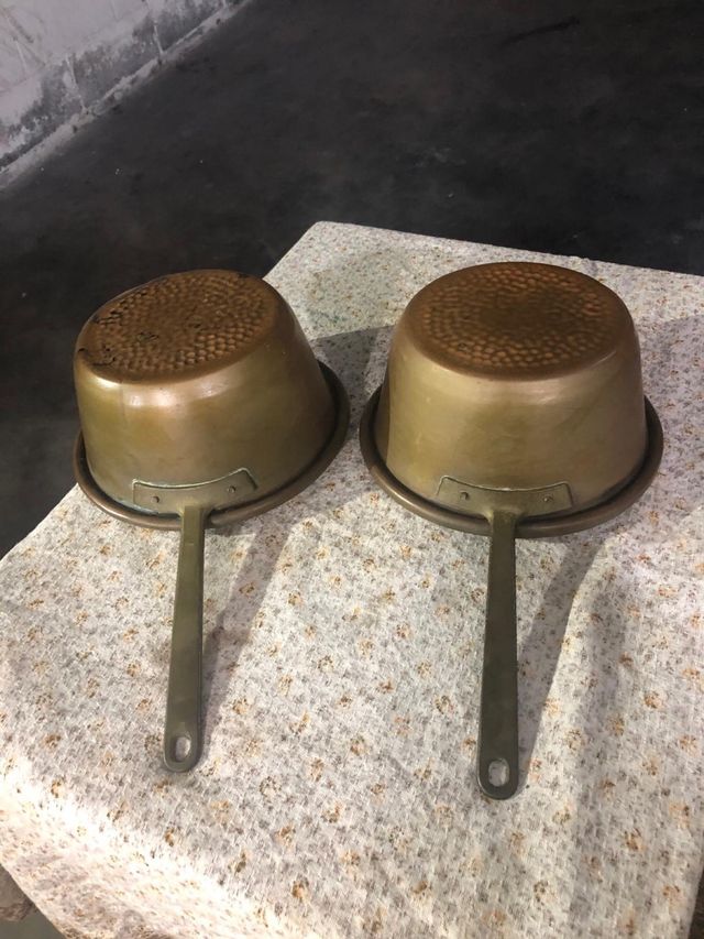 Dettagli del prodottoBellissime pentole in rame antico, martellate a mano. Perfette per un tocco rustico in cucina o come elemento decorativo.