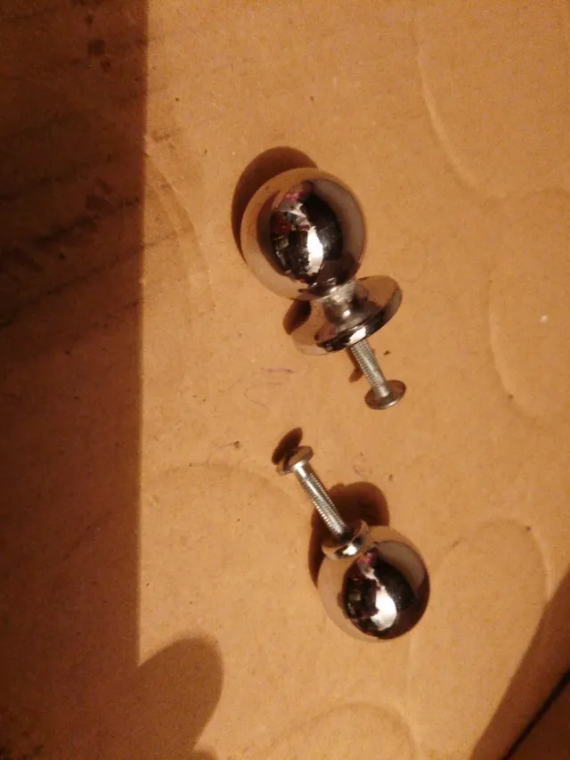 Set di due pomoli sferici in metallo. - Materiale: metallo lucido. - Design: forma a sfera.