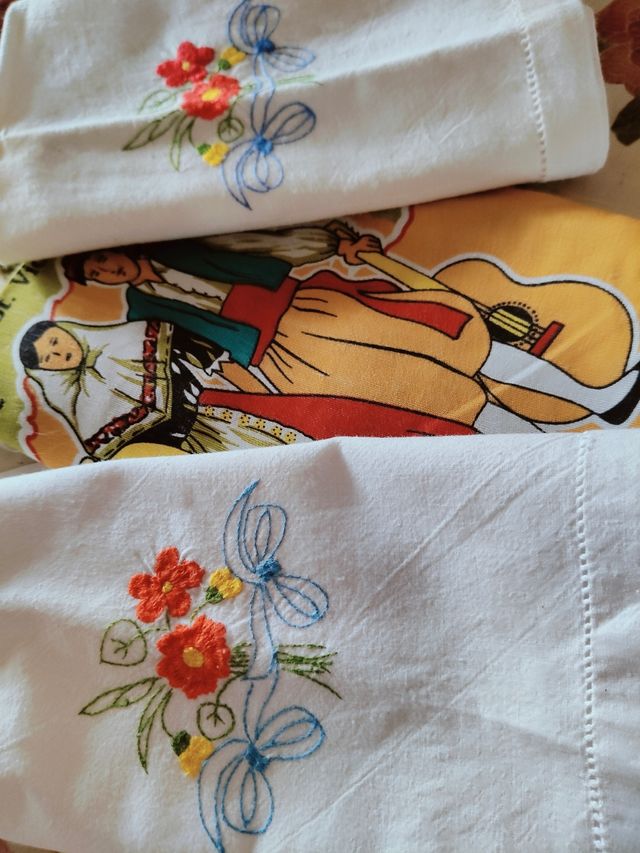 2 porta tovagliolo vintage ricamato a mano + un grembiule da cucina nuovo