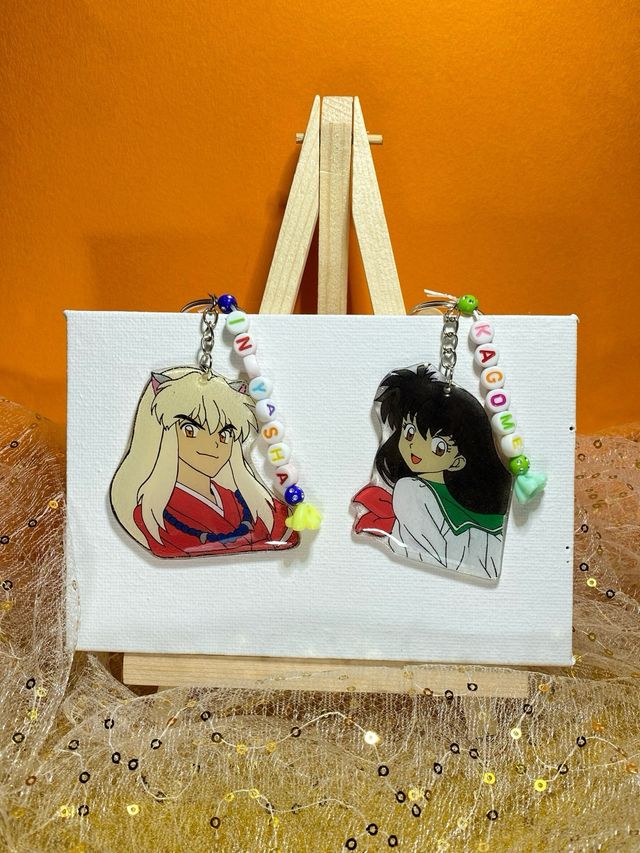 2 portachiavi in resina disegnati e poi dipinti a mano con acrilici