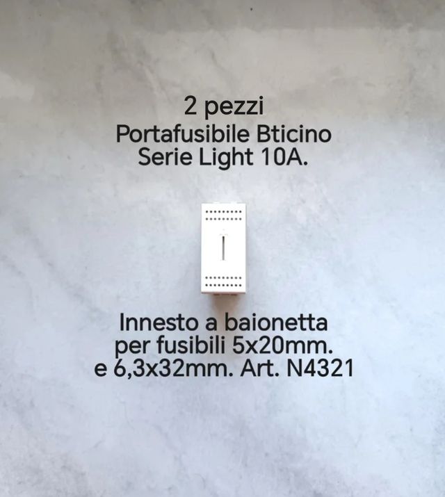 Dettagli del prodotto2 portafusibili Bticino serie Light per fusibili 5x20mm. e 6,3x32mm.