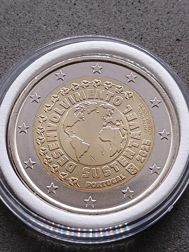 Dettagli del prodottoMoneta commemorativa da 2 euro del Portogallo, anno 2025, dedicata allo Sviluppo Sostenibile.