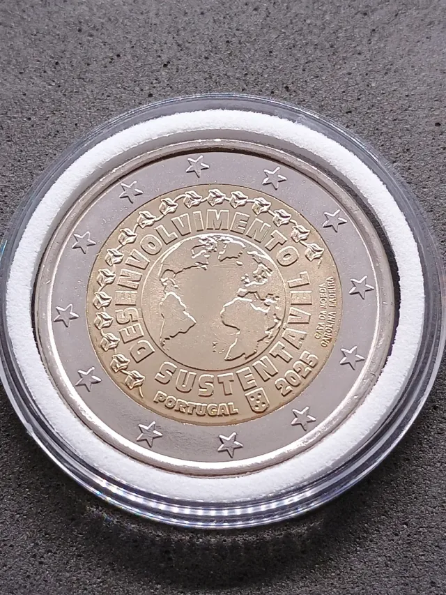 Dettagli del prodottoMoneta commemorativa da 2 euro del Portogallo, anno 2025, dedicata allo Sviluppo Sostenibile.