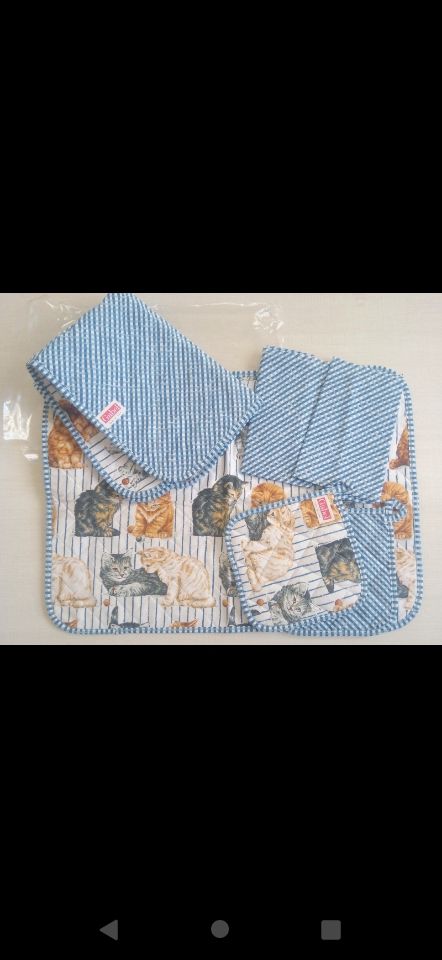 Dettagli del prodottoSet di 2 tovagliette americane, 2 presine e 2 tovaglioli coordinati, 100% cotone , imbottitura interna 100% poliestere. Made in Italy, marca Gabel. Nuovi mai usati