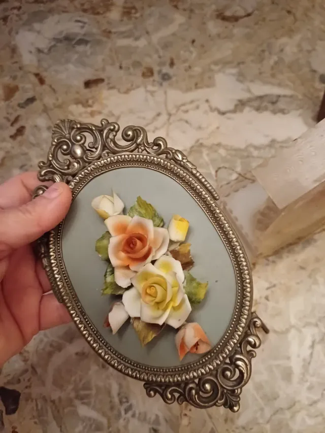 2 Quadretti ovali-Cornice Argentata con Fiori Simi