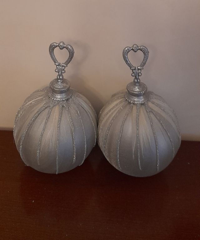 2 sfere in plastica rivestite in tessuto e decori lurex argento molto eleganti e luminose diametro cm 14 circonferenza cm 32