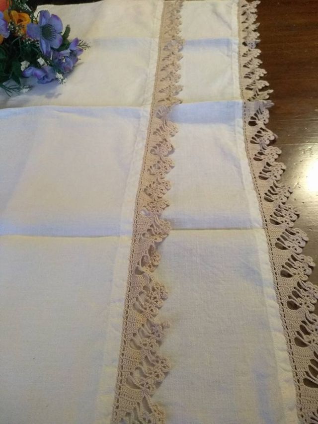 Dettagli del prodottoDue strisce con bordo all'uncinetto, ESEGUITO A MANO. 100% Cotone.