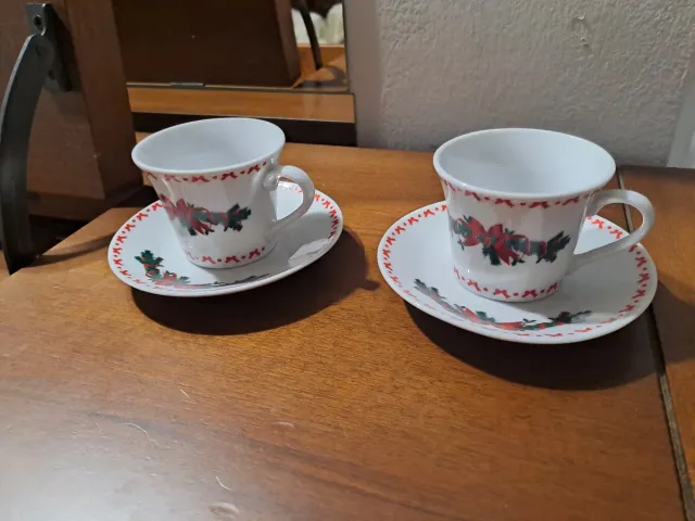 2 Tazzine con Piattino - Disegni Natalizi