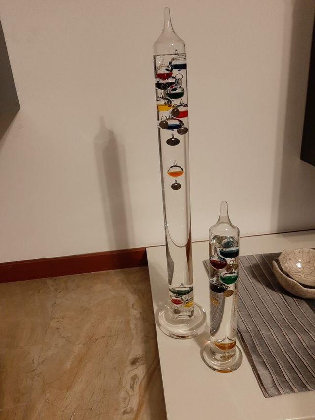 Due termometri Galilelo: altezza 34cm prezzo singolo €15; altezza 62cm prezzo singolo €15. Se venduti insieme prezzo totale €30.