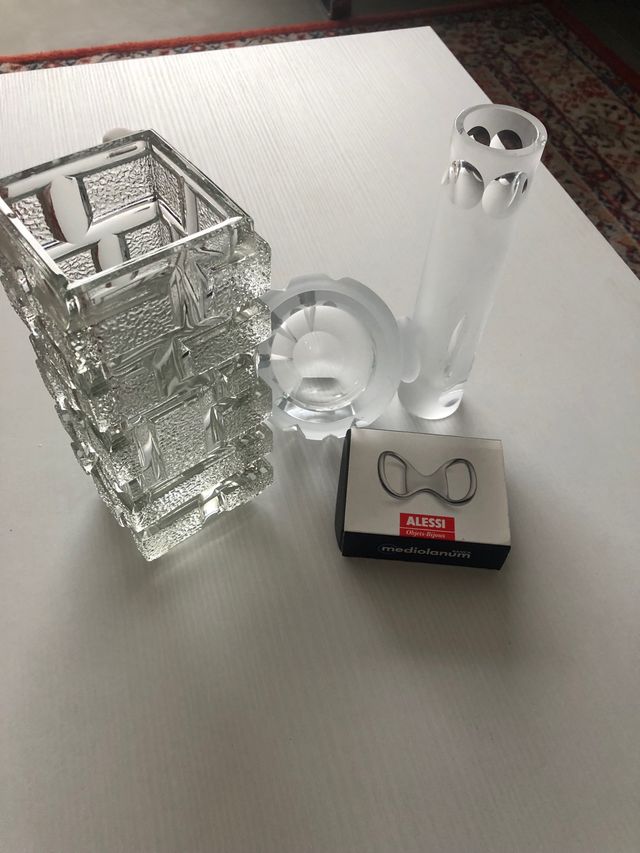 2 vasi di cristallo uno quadrato e uno doppio più cavatappi Alessi