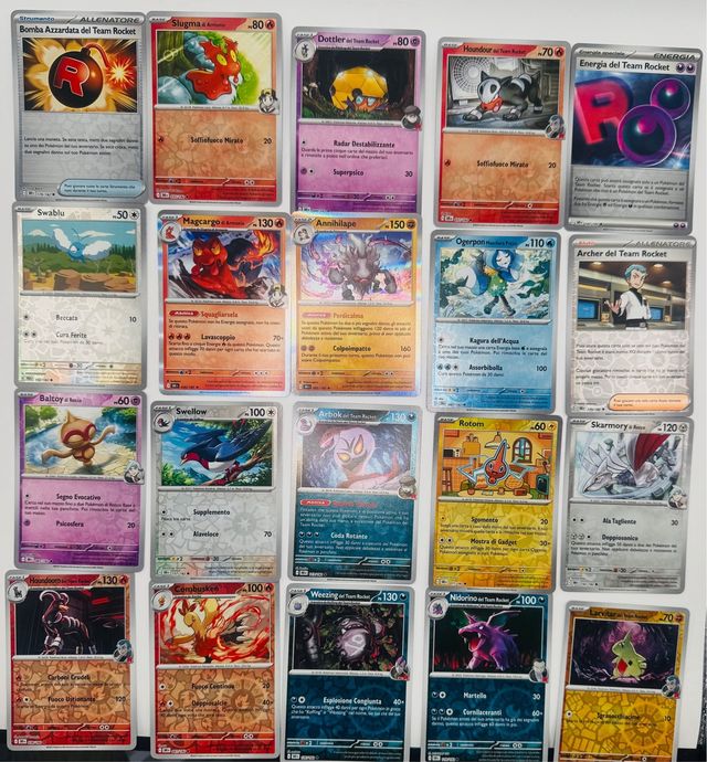 Dettagli del prodottoLotto di 20 carte Pokemon del Team Rocket in condizioni Near Mint (NM).