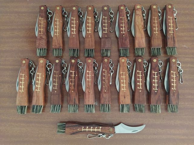 Dettagli del prodotto20 coltellini pieghevoli per funghi con spazzola integrata e 20 bussole con cordino. I coltellini sono in legno scuro, con lama in acciaio inox e dimensioni ridotte, perfetti per essere portati sempre con sé. Le bussole sono di colore nero, con quadrante ben visibile. Ideali per escursioni e attività all'aria aperta.