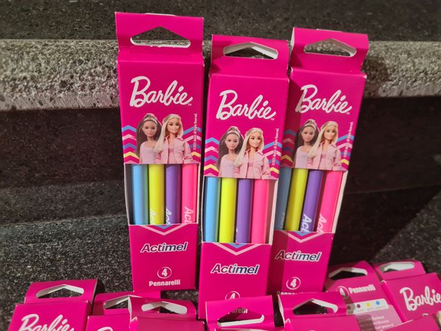 Stock 25 pz Pennarelli Carioca Barbie confezioni da 4 colori Actimel gadget