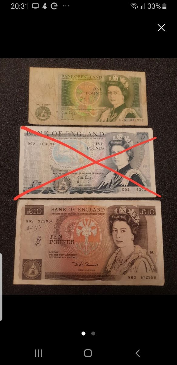 2 banconote da sterline inglesi