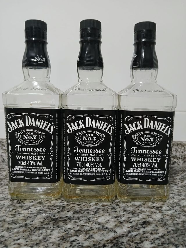 Dettagli del prodottoTre bottiglie vuote di Jack Daniel's Old No.7 Tennessee Whiskey. Sono in buone condizioni, puliti e pronti per il riutilizzo.