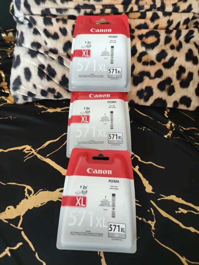 Dettagli del prodottoVengono vendute TRE cartucce d'inchiostro grigio Canon PIXMA 571XL.