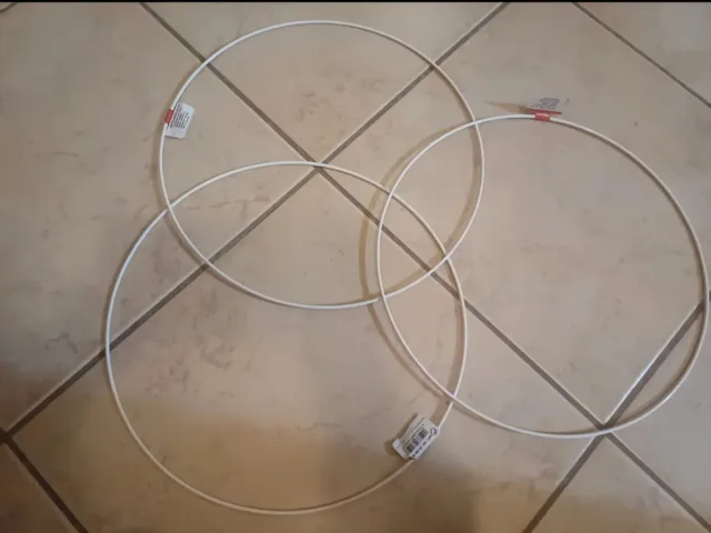 3 Cerchi metallici bianchi diametro 30 cm per creazioni, mai usati, ancora con etichetta. Il prezzo si riferisce a tutti e tre i cerchi.