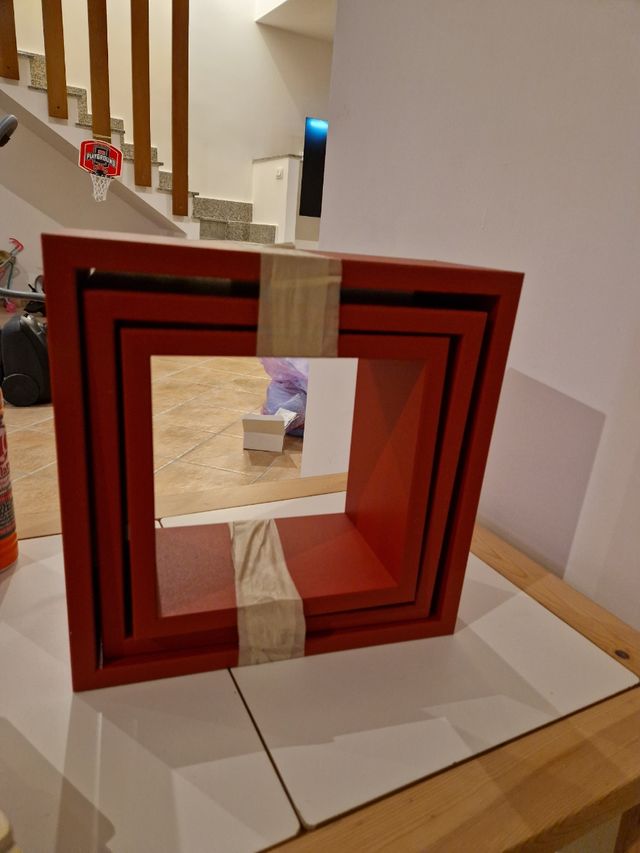 vendo tre cubi rossi da usare come mensole porta oggetti.