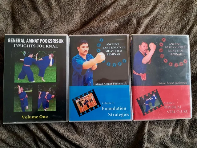 Dettagli del prodottoSet di 3 DVD sul Muay Thai Boran, insegnato dal Colonnello Amnat Pooksrisuk.