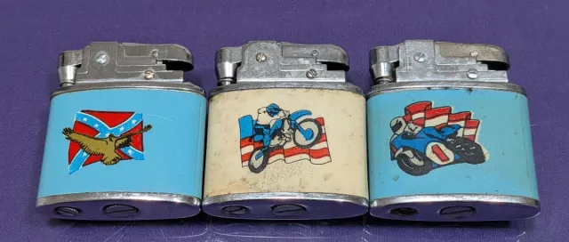 Dettagli del prodottoSet di tre accendini a benzina con design americani - Accendino con design di bandiera confederata e aquila. - Accendino con design di motociclista e bandiera americana. - Accendino con design di corridore di moto e bandiere. La descrizione è stata tradotta automaticamente.