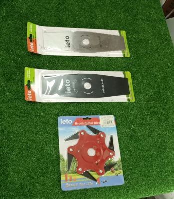 Set di accessori per decespugliatore marca Iieto. - 3 lame in metallo. - 1 disco in metallo a 6 punte.