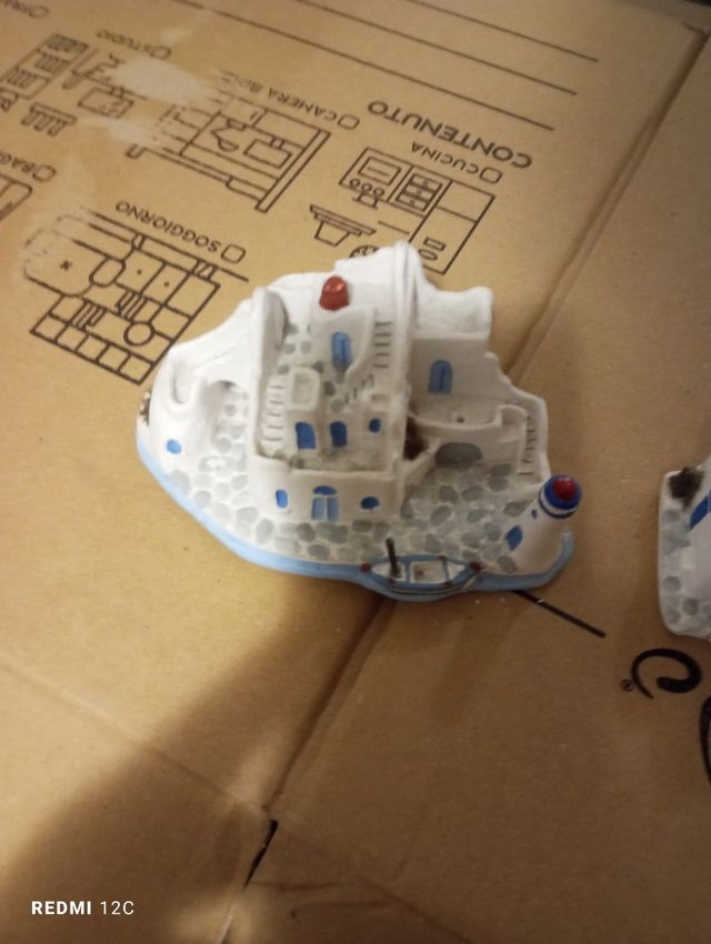 Dettagli del prodottoSet di 3 mini casette tipiche greche, acquistate ad Atene. Rappresentano l'architettura tradizionale delle isole greche.
