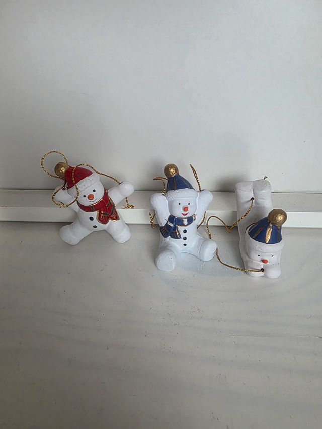 3 Pupazzi Neve Ceramica Decorazioni Natalizie