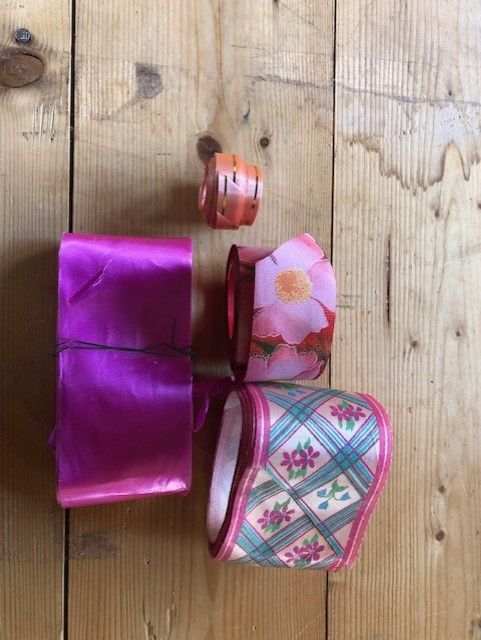 3 ritagli nastro da pacchi regalo rosa e 1 fiocco