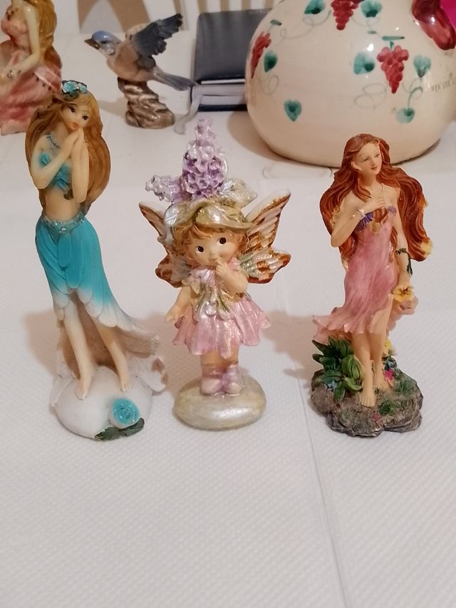 Dettagli del prodottoBellissime statuette di fatine, perfette per collezionisti o per decorare la propria casa. Sono tre in totale, ognuna con dettagli unici e delicati. Sono realizzate in resina e presentano colori pastello. Ideali come regalo o per aggiungere un tocco di magia alla propria collezione. - Tre statuette - Materiale: resina - Colori pastello - Dettagli delicati