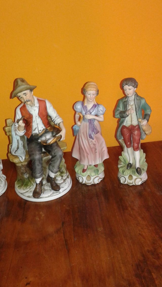 3 STATUINE 1 Anziano, Uomo con violino, Dama con o