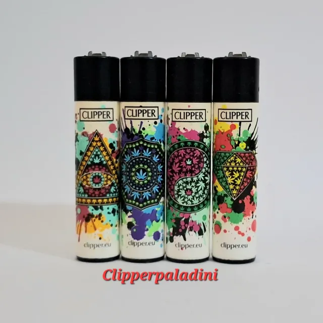 Dettagli del prodottoSet di quattro accendini Clipper con design artistici e colorati.