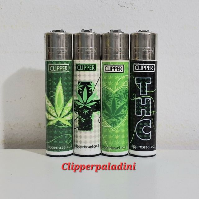 Set di 4 accendini Clipper nuovi Israel Vintage - Design a tema Cannabis - 4 accendini inclusi - Ottime condizioni estetiche